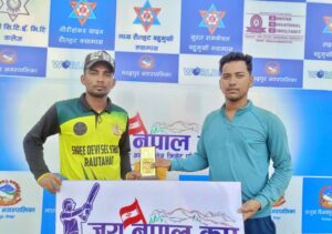 नेपाली काङ्ग्रेस विद्यार्थी विभागद्वारा आयोजित जय नेपाल कप क्रिकेट प्रतियोगिताकाे लिक चरणकाे अन्तिम खेल साेमबार सम्पन्न भएकाे छ । मंगलबारबाट भने नकआउट चरणका खेलहरु हुने जनाइएकाे छ । साेमबारकाे लिक चरणकाे अन्तिम खेल श्री देवी सिटिईभिटी कलेज र एजुकेसन कन्सलटेन्सी बिचमा भएकाे हाे । रौतहट अन्तर कलेज T-20 क्रीकेट लिग प्रतियोगिता २०८२ को ७ औं दिनको खेलमा श्री देवी सिटिईभिटी कलेज ४ विकेटले विजयी भएको नेपाली काग्रेस विद्यार्थी बिभागका संयाेजक शयामहरी चाैलागाईले तराई पाेष्टलाई जानकारी दिनु भयाे । टस जितेर ब्याटिङमा उत्रीएको अभियान एजुकेसन कन्सल्टेन्सिले १८.१ ओभरमा आफ्नो सबै विकेट गुमाउँदै ८५ रनको योगफल तयार पारेको थियो । जवाफी ब्याटिङमा उत्रिएको श्री देवि सिटिईभिटी कलेजले १४.३ ओभरमा ६ विकेट गुमाउँदै लक्ष्य पूरा गरेको थियोे । यो खेल संगै लिग चरणको खेलहरु सकिएका छन । समूह A बाट विजेता उपविजेता बन्दै मध्य रौतहट बहुमुखी क्याम्पस गरुडा र गौरीशंकर यादव बहुमुखी क्याम्पस गौरले सेमिफाइनलको यात्रा तय गरेको छ भने समूह B को विजेता उपविजेता बन्दै सिन्धुरेघारी बहुमुखी क्याम्पस र श्री देवि सिटिईभिटी क्याम्पसले सेमिफाइनलको यात्रा तय गरेको छ ।